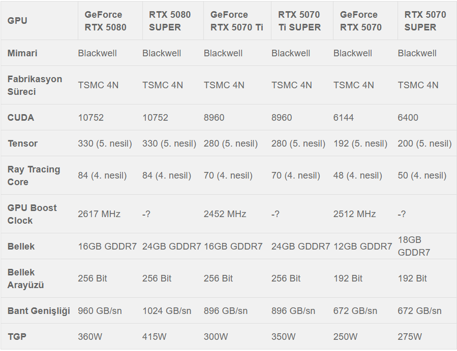 Şu ana kadar teknik detaylar resmi olarak açıklanmasa da, RTX 5070 SUPER ve RTX 5070 Ti SUPER’in bellek kapasitesi, çekirdek sayısı ve ray-tracing performansı gibi alanlarda geliştirilmiş özelliklerle gelmesi bekleniyor. Bu durum, özellikle yüksek çözünürlükte oyun oynayan ve içerik üretimi yapan kullanıcılar için cazip bir seçenek yaratacak.